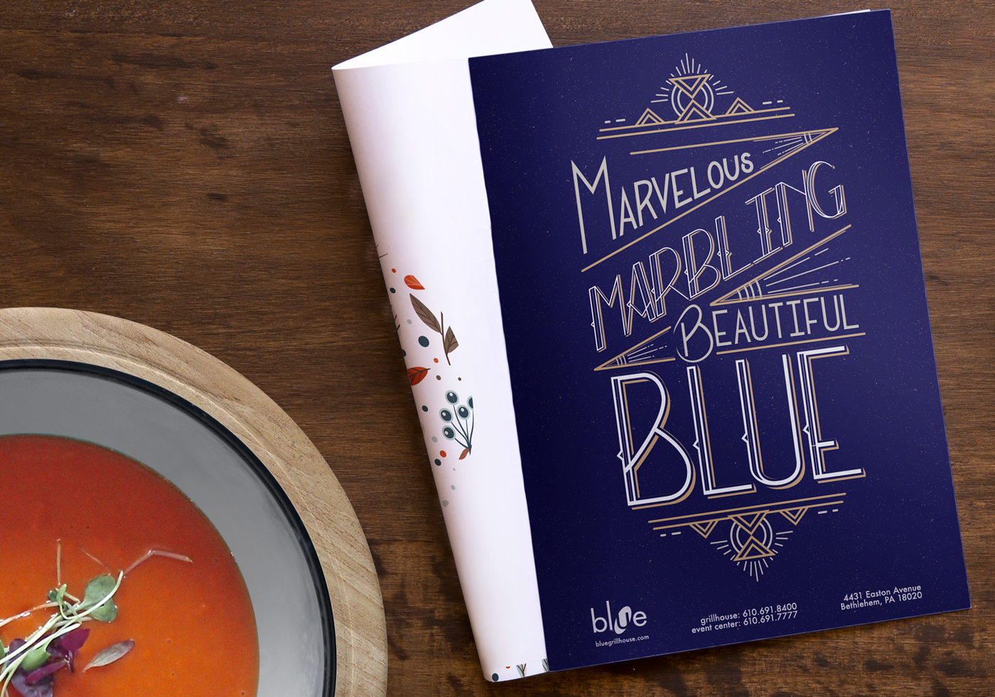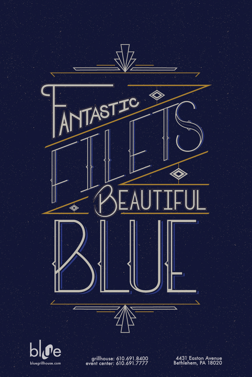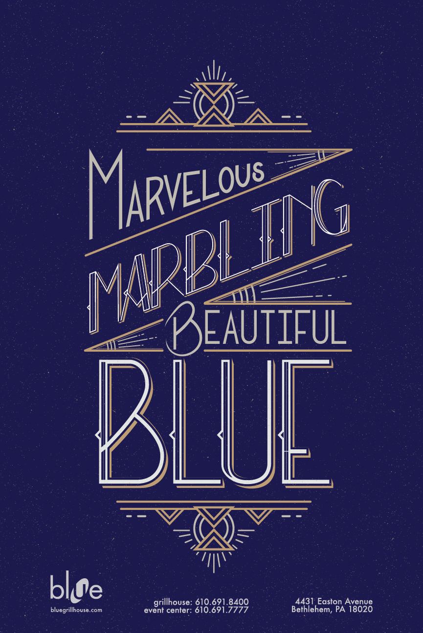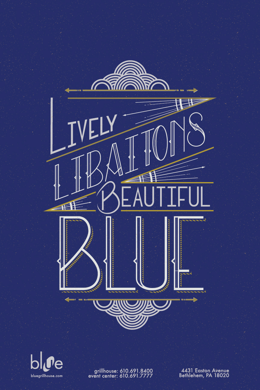 This series uses hand lettering and classic colors to compliment the interiors at Blue Grillhouse.
